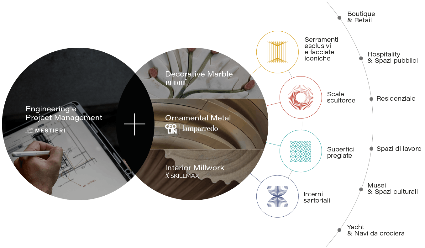 Ogni opera di Mestieri nasce da una ricerca approfondita: lo studio di materiali, tecnologie e innovazioni . alla base di prodotti dall’elevata resa estetica e prestazionale. L’ufficio tecnico si occupa dello sviluppo ingegneristico dei componenti, della definizione dei sistemi applicativi in cantiere e delle verifiche statiche, strutturali e dimensionali del sito tramite 3D scan. Le idee progettuali vengono così tradotte in modelli precisi, pronti per la produzione e l’installazione.